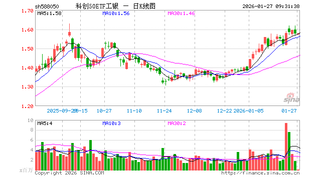 1月27日,科创50ETF工银(588050)开盘跌0.44%,报1.570元。科创50ETF工银(588050)重仓股方面,中芯国际开盘涨0.07%,寒武纪涨0.00%,海光信息涨0.50%,澜起科技跌1.21%,中微公司涨0.22%,金山办公涨1.00%,联影医疗涨0.04%,拓荆科技跌0.03%,芯原股份跌0.00%,沪硅产业跌0.09%。